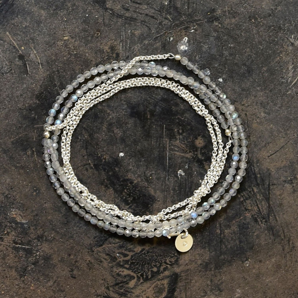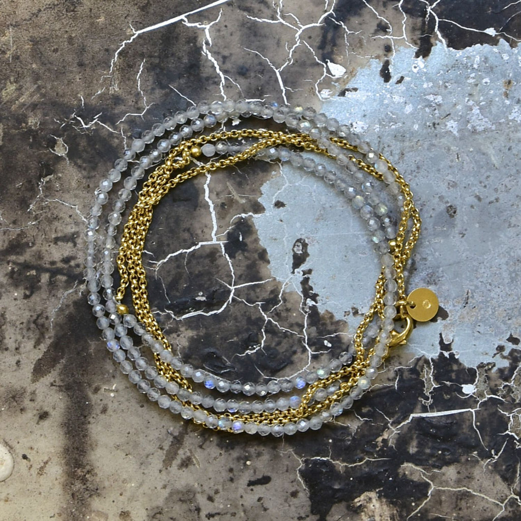 In unseren LOOP-Armbändern kommen Gegensätze zusammen und verbinden sich zu einem multifunktionalen Schmuckstück mit Glamour. Die zarten, facettierten Edelsteinperlen verleihen den Armbändern einen funkelnden Glanz, der besonders durch die Kombination mit den Ketten verstärkt wird.