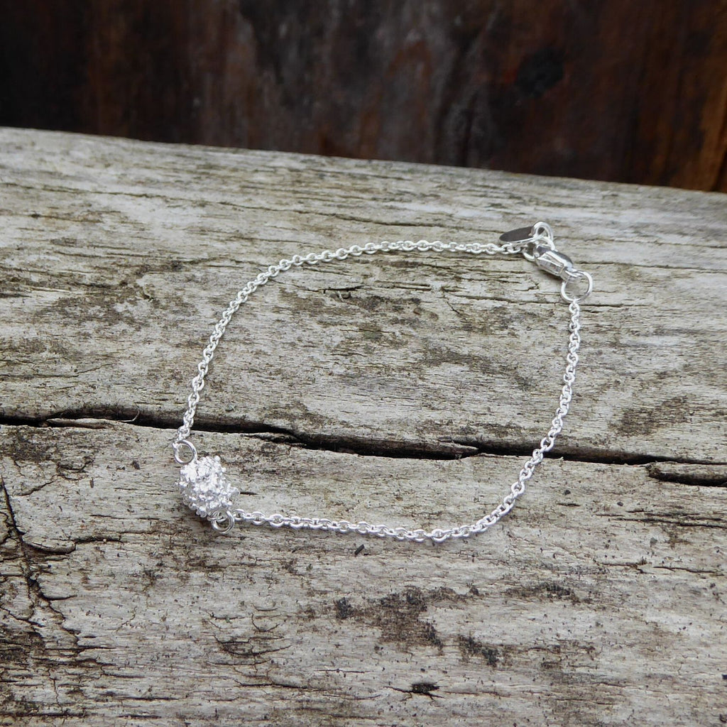 Eine Traube aus glitzernden Kügelchen. Mit der Größe einer Walderdbeere wird der kleine Minibubble-Anhänger zu Deinem ständigen Begleiter. Er hat er seinen großen Auftritt indem er spielerisch und in Bewegung Dein Handgelenk umschmeichelt.