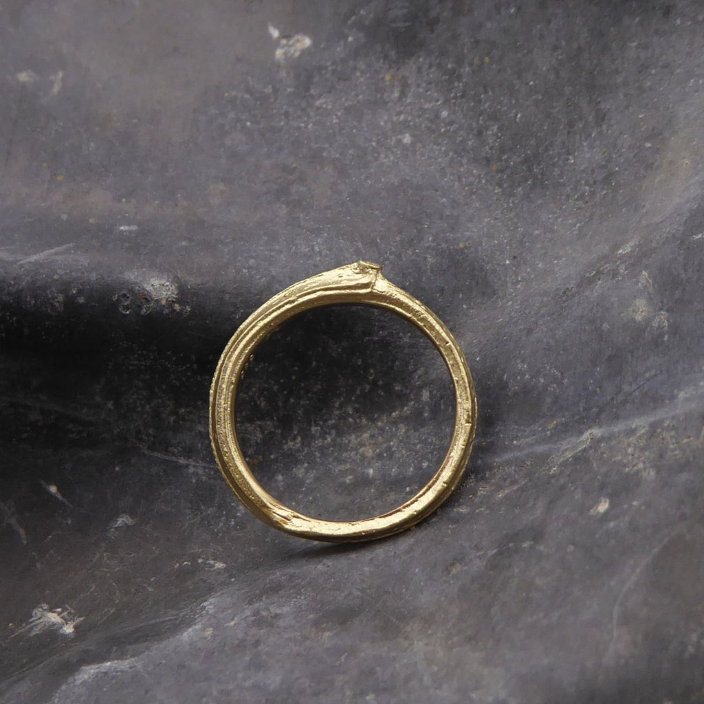 schlichter-handgefertigter-astring-mit-feiner-zarter-struktur-von-echten-aestchen-abgeformt-auf-der-oberseite-befindet-sich-ein-blattansatz-in-vierzehn-karat-gelbgold-aus-unserer-goldschmiede-in-frankfurt-auch-in-fairtrade-gold-oder-fairmined-silber-erhaeltlich-breite-des-rings-ca-drei-millimeter-der-ring-eignet-sich-auch-als-ausgefallener-verlobungsring