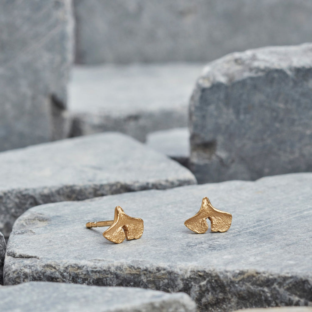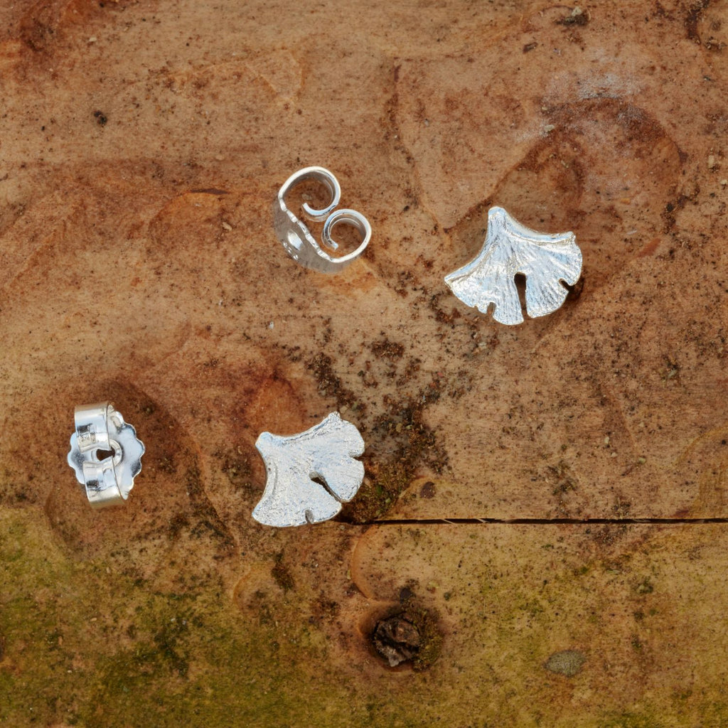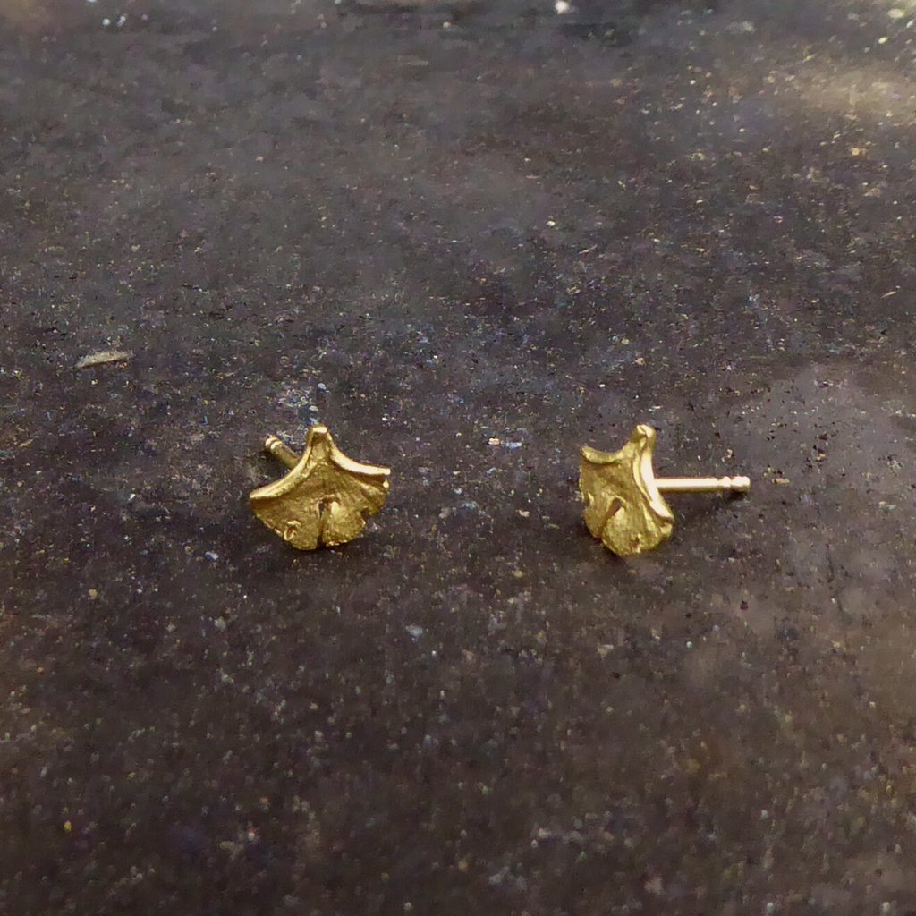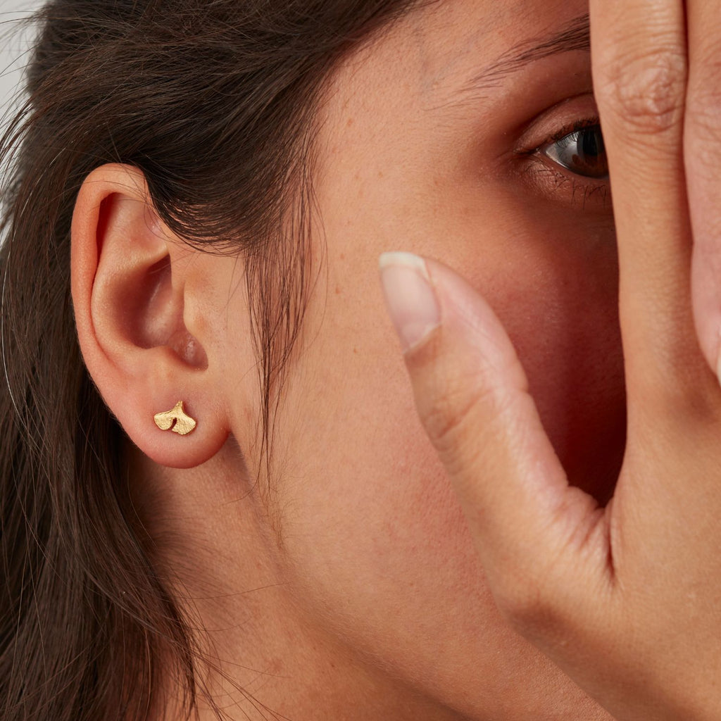 Ginkgo-Ohrstecker mini: ca. 8 x 6,5 mm, Ø Stift 1 mm, Verschluss Ohrmutter 5 mm