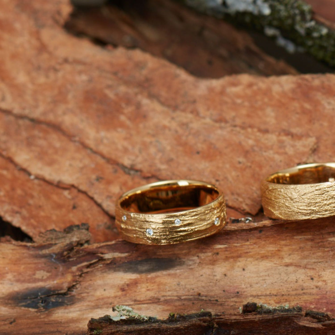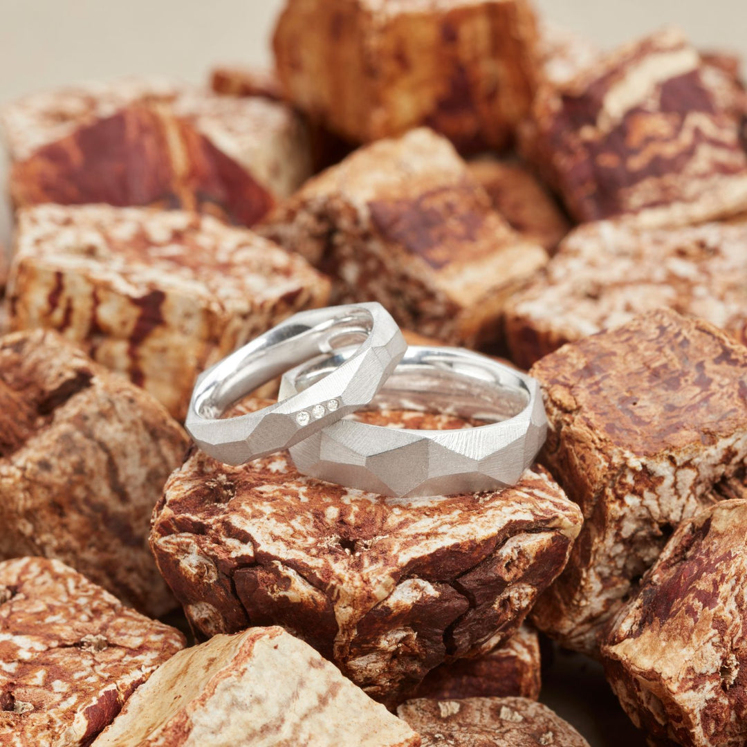 Bei vielen Schmuckstücken aus meiner Kollektion ist es möglich, Diamanten und oft auch andere Edelsteine einzuarbeiten. Besonders schön kommen die Steine bei Ringen zur Geltung. Weiter unten stelle ich Dir verschiedene Möglichkeiten vor.