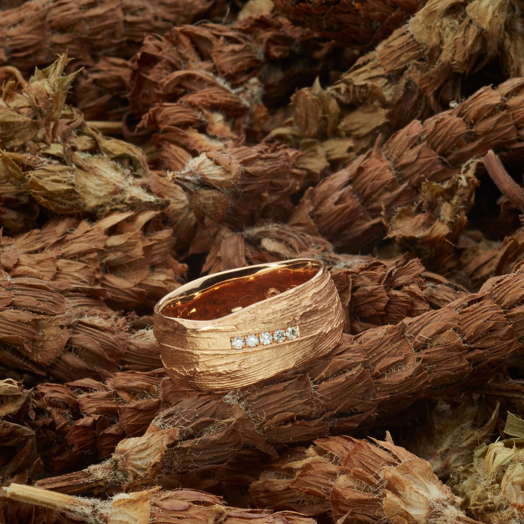 Grasring 7-9 mm, Roségold 750 mit 5 Brillanten 1,3 mm in Reihe gefasst