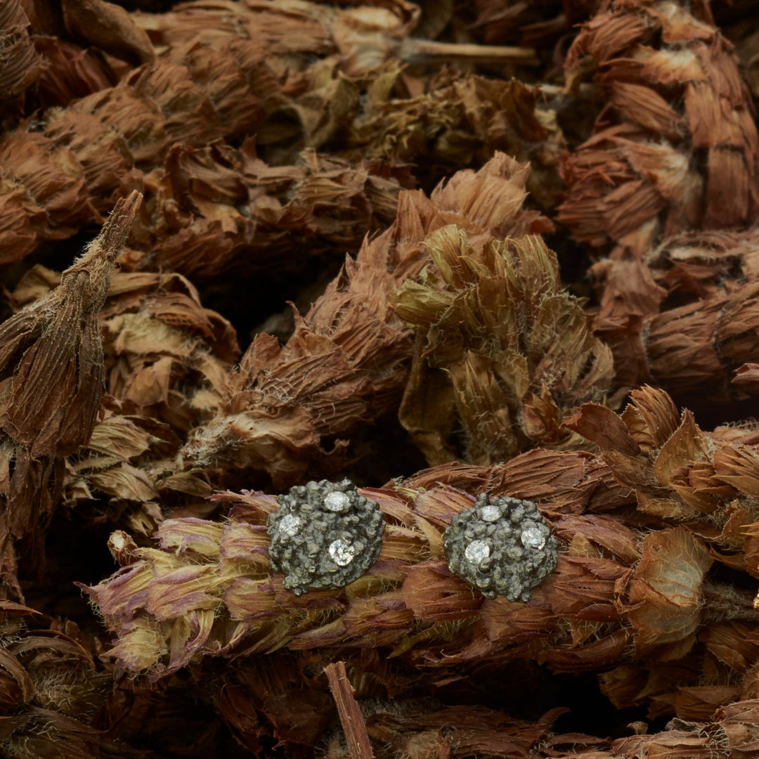 Minibubble-Ohrstecker klein, Silber 925 schwarz rhodiniert mit jeweils 3 Brillanten 1,7 mm