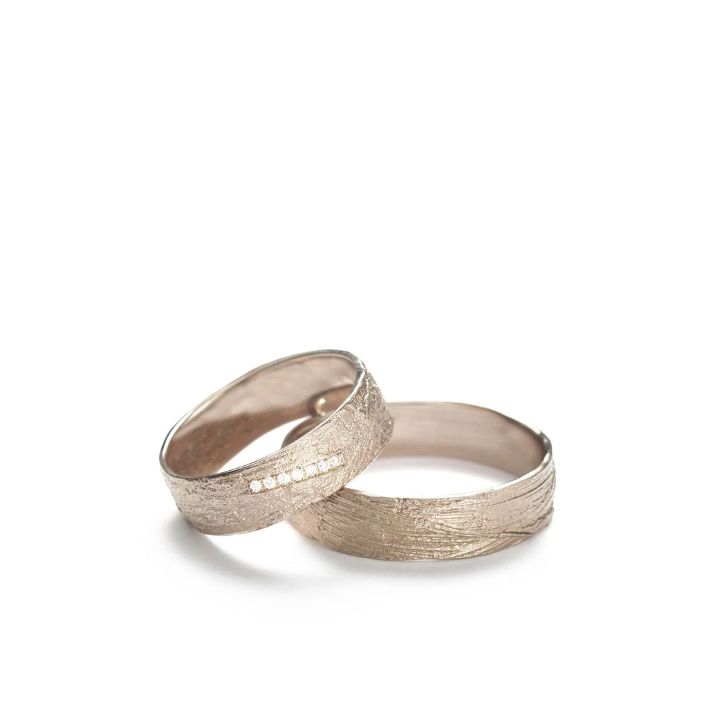 Grasringe mit 6 mm Breite in Roségold 750 mit einer Brillantreihe im Damenring